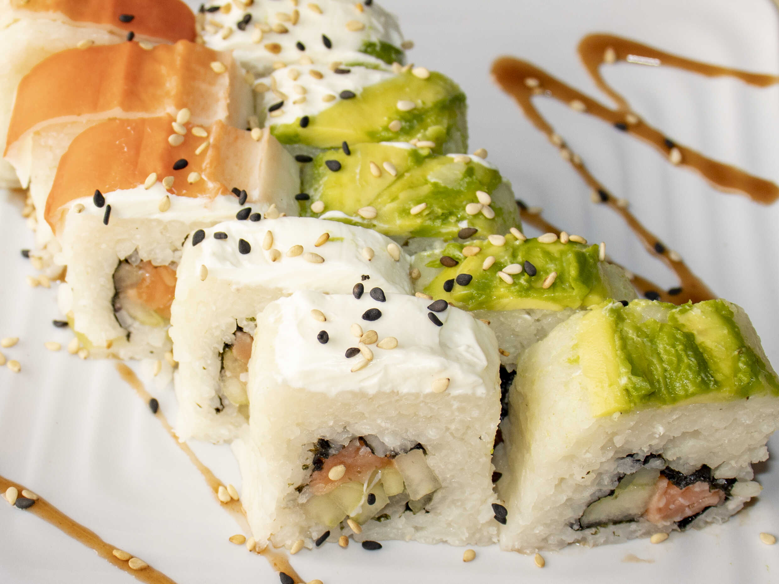 XD: Camarón, salmón, surimi, pollo, arrachera, pepino, aguacate, philadelphia y manchego. XF: Tampico, salsa kushiague y ajonjolí.
