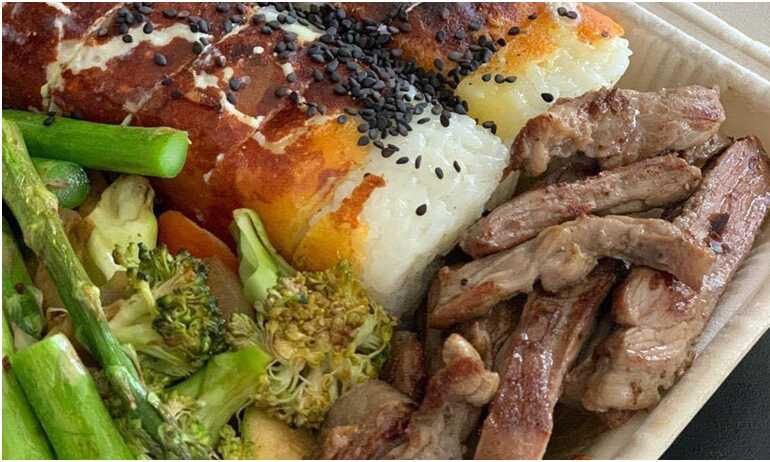 Por dentro Maky de tu elección (no aplica especialidades) Por fuera Acompañado con 200 gr de arrachera, más cama de verduras (Zanahoria, calabaza, brocolí y cebolla)