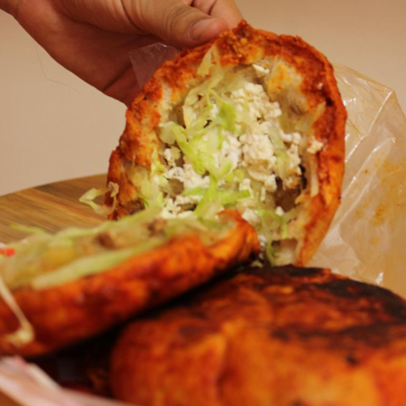Tradicional pambazo chilango acompañado de queso, crema y lechuga