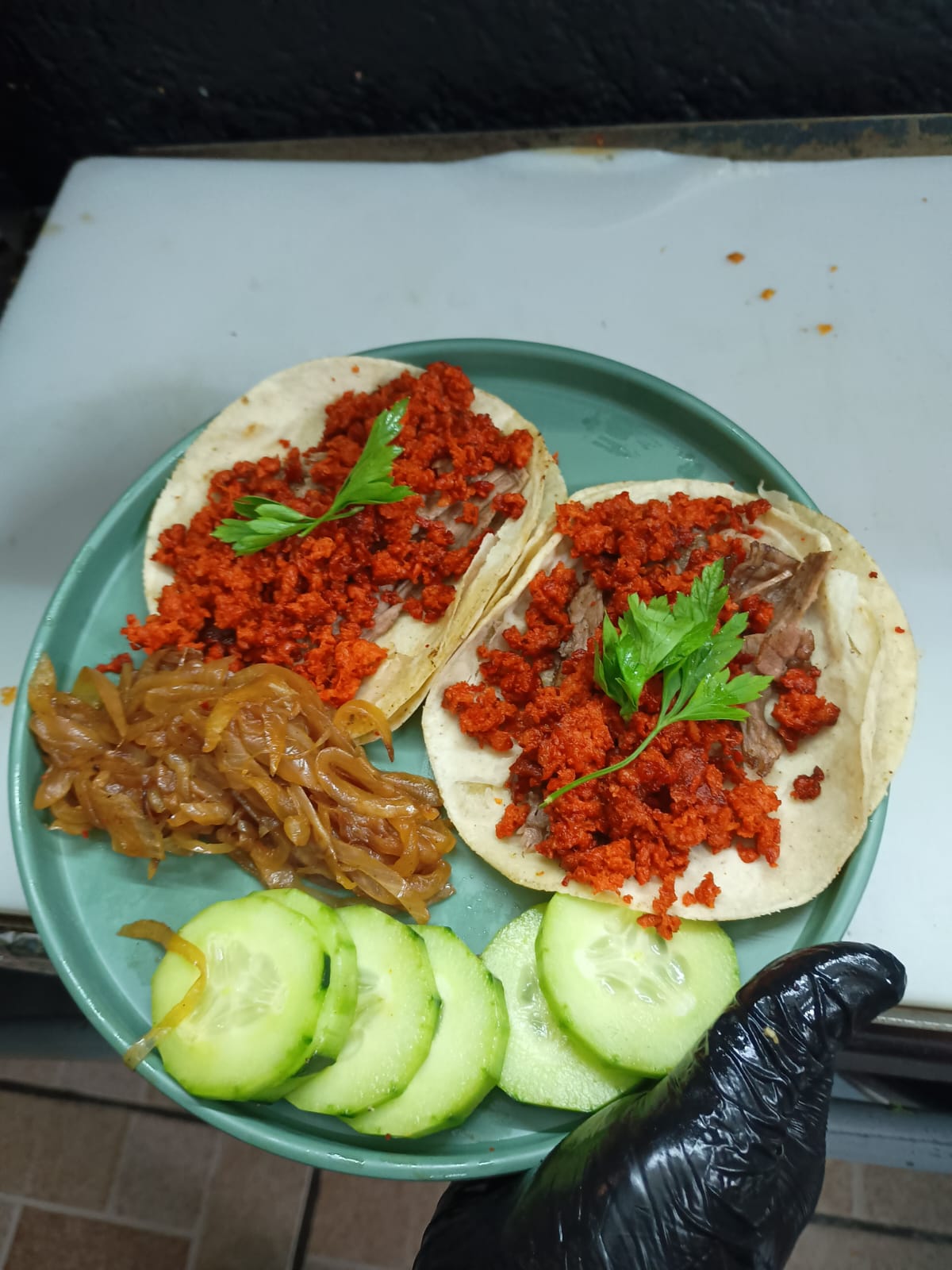 Acompañado de una costra de queso mozzarella, verdura y líquidos tradicionales.