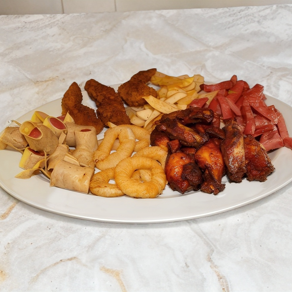 Salchitacos*1 + Salchipulpos*1 + Orden de Alitas 10 pzas*1 + Tenders Tiras de Pollo 6 pzas*1 + Aros de Cebolla*1 + Papas a la Francesa*1