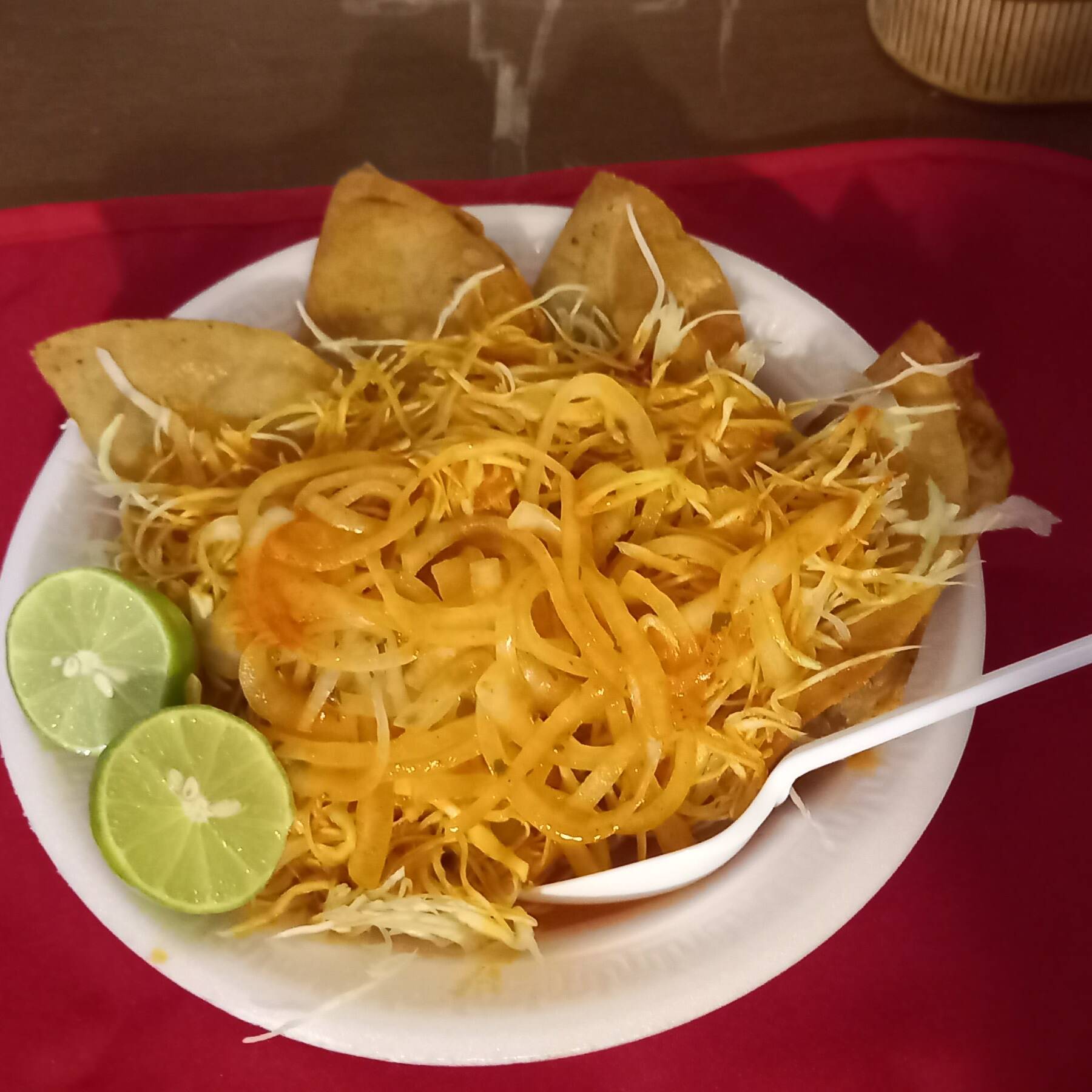 4 Deliciosos tacos dorados rellenos de papa y chicharron prensado bañados en salsa, acompañados de repollo cebolla y salsa picosita