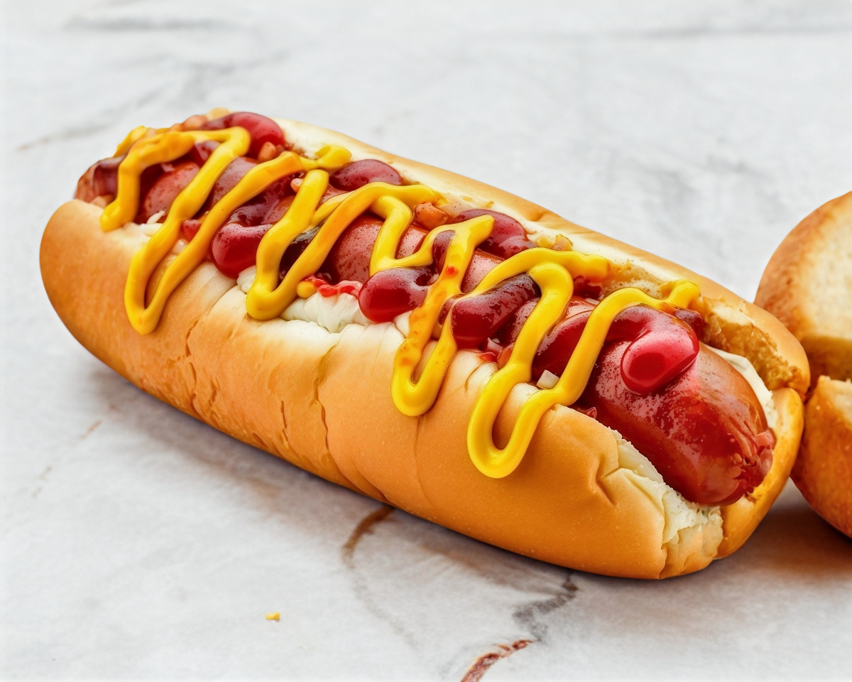 Salchicha de pavo especial, tocino, jitomate, cebolla, mayonesa, mostaza y cátsup.