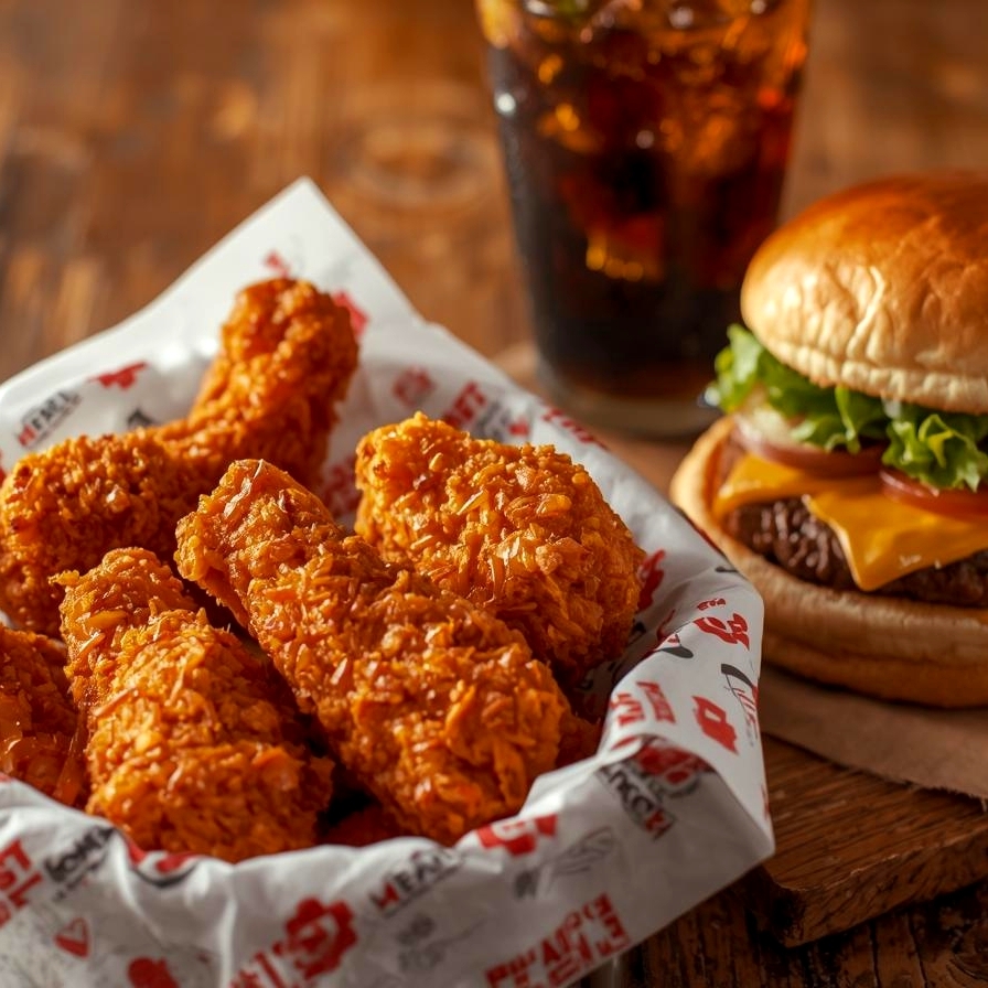 Tenders Buffalo*1 + Refresco del Día*1 + Hamburguesa Cheese Burguer*1