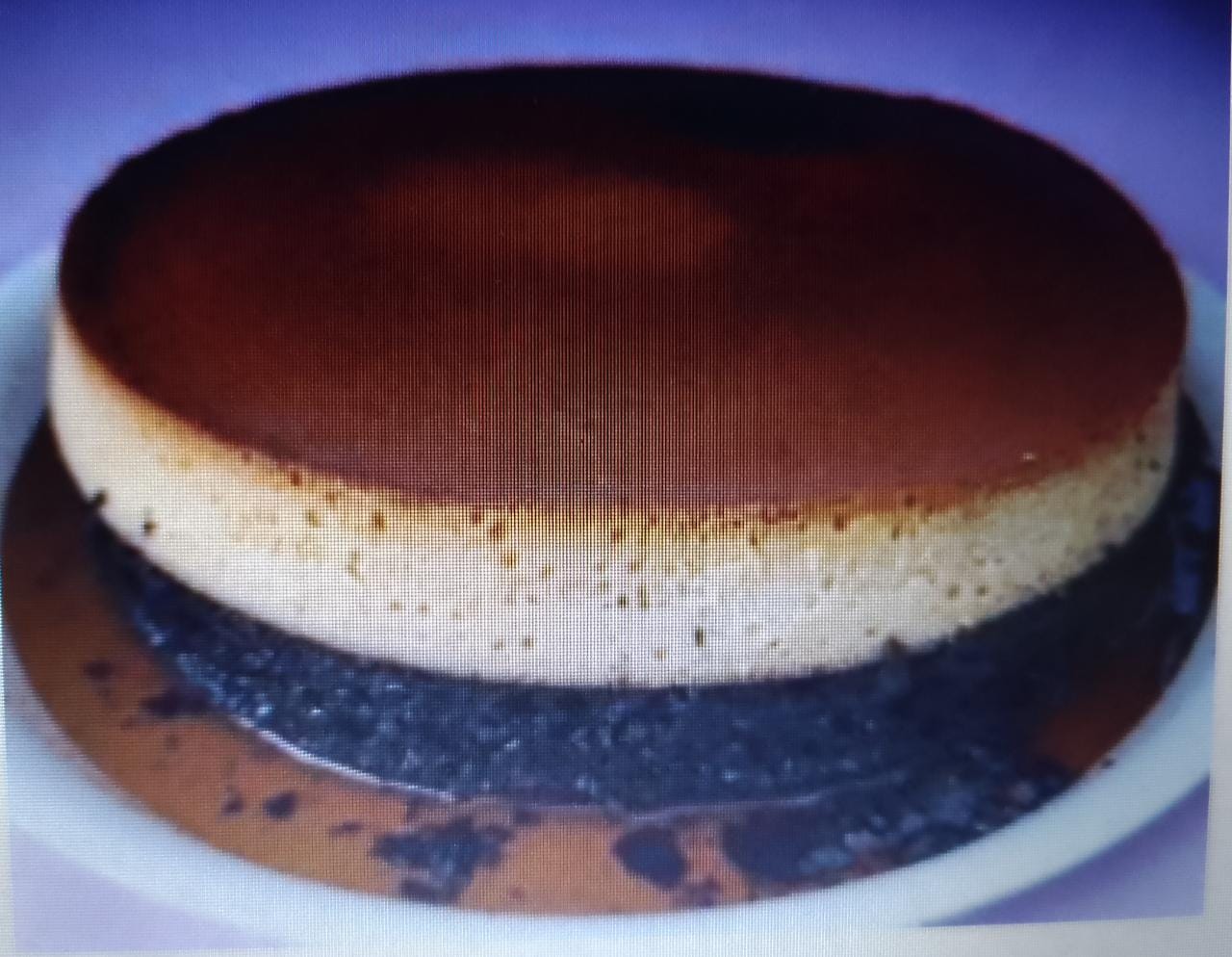 Pastel de chocolate extra húmedo y flan napolitano. tamaño intermedio para 8 personas aproximadamente