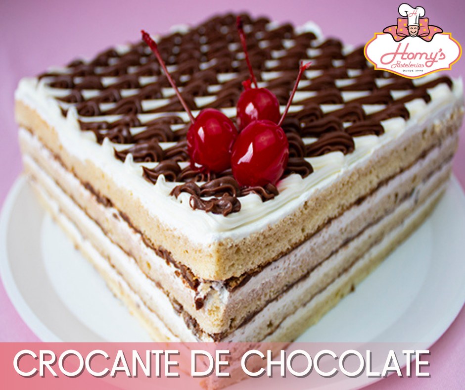 Pan de vainilla humectado en 3 leches sabor kahlua, relleno de 3 capas de chocolate crocante y crema de philadelphia, cubierto de queso con decoración de chocolate oscuro y blanco con 3 cerezas. tamaño intermedio para 12 a 15 personas