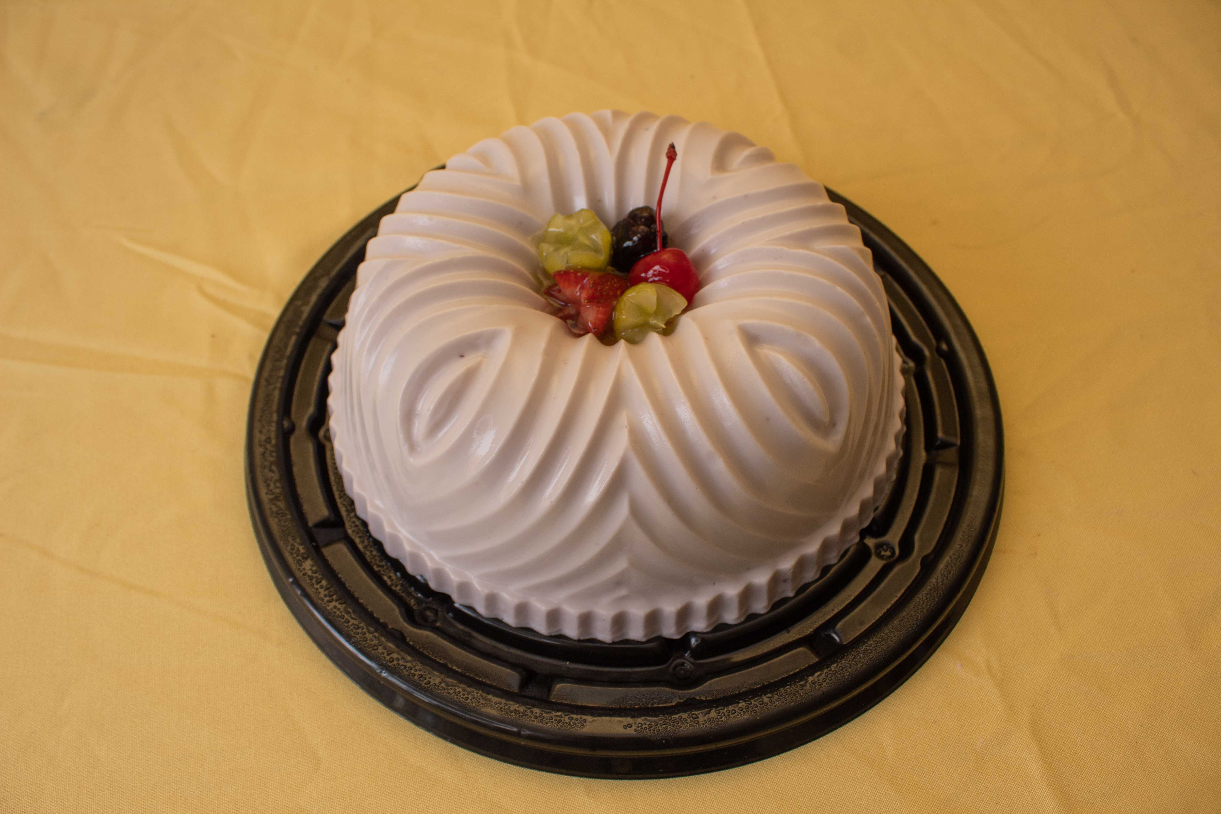 200 gramos, decorado con cerezas en almibar.