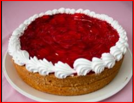 Pay de queso relleno de queso crema, fresas frescas y mermelada de fresa, decorado con crema a la orilla para 12 a 15 personas aproximadamente