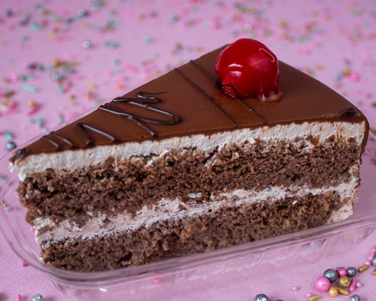 Pan de vainilla o chocolate, mojado en 3 leches, cubierto de chantilly, relleno de durazno. tamaño mediano para 8 personas