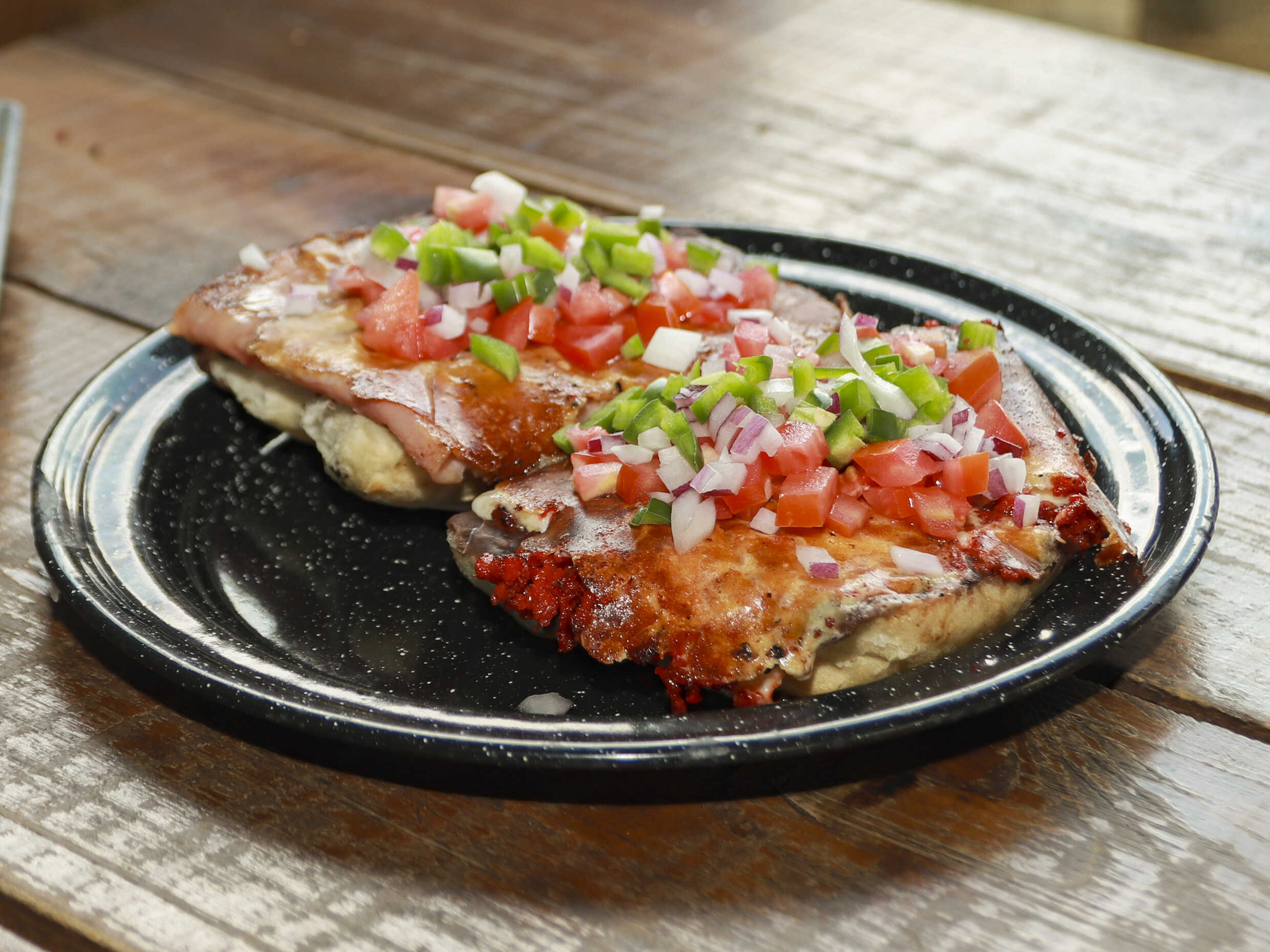 Nuestro bolillo es a la leña con una base de frijolitos fritos bien sazonados con una capa generosa de queso que gratinamos al momento. Se los servimos con nuestro pico de gallo fresco para darle ese toque vibrante.