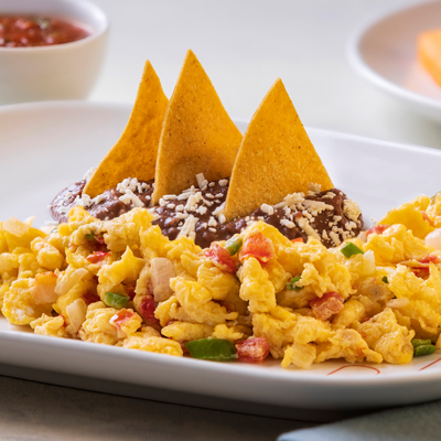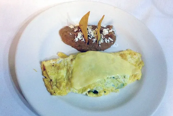 Incluye Café de Olla, 2 blanquillos frescos (rancheros, mexicanos, revueltos, estrellados), frijoles fritos, queso fresco.