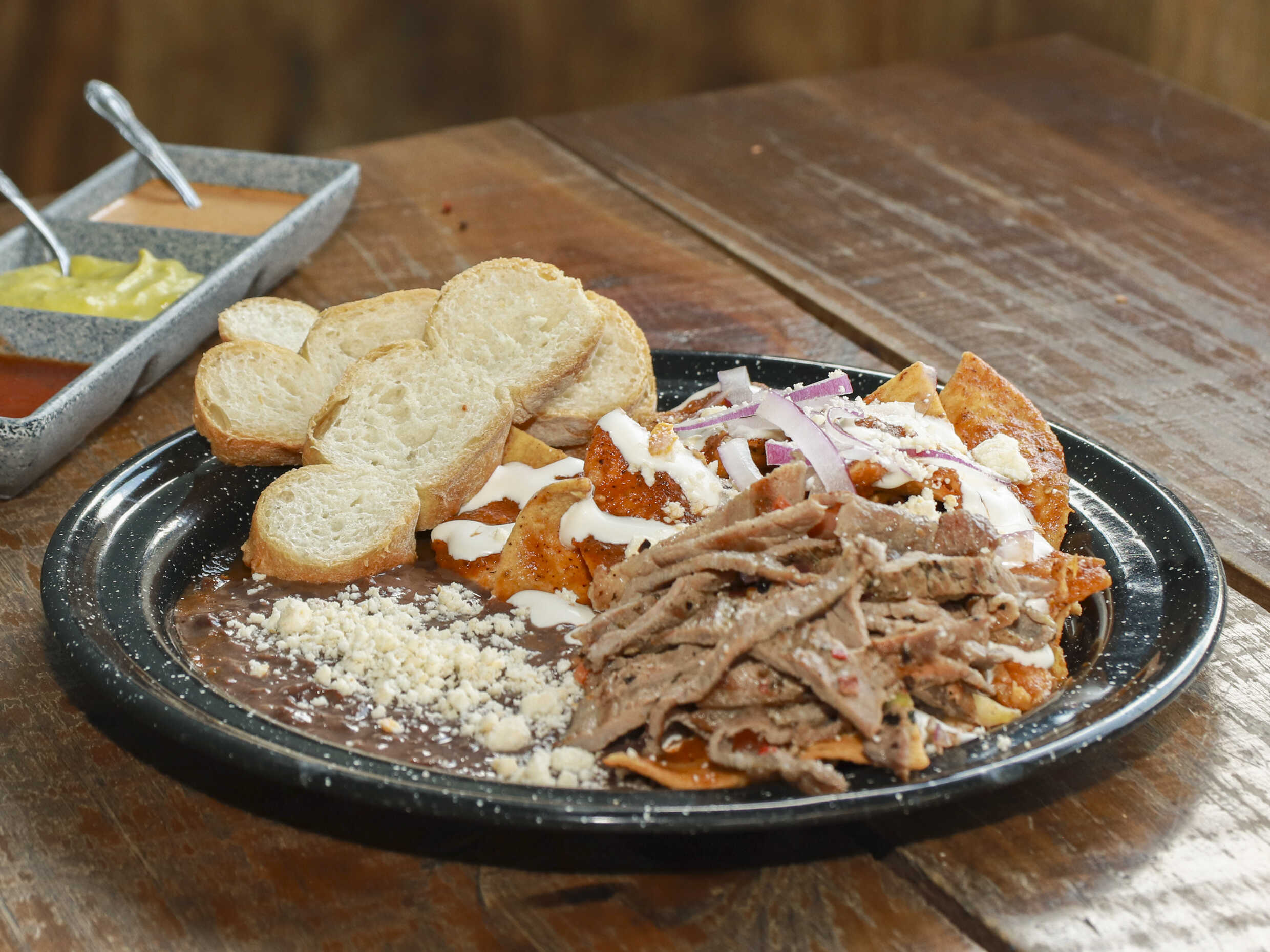l crujido que enamora! Disfruta de nuestros totopos caseros bañados en salsa roja o verde, con la frescura del queso de rancho y el sabor de nuestros frijoles fritos.