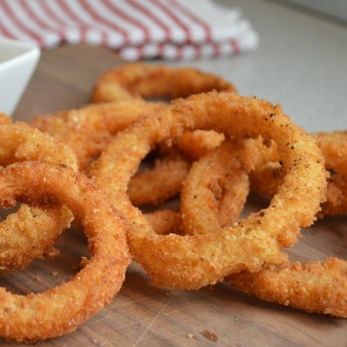 Crujientes aros de cebolla marinados y fritos, acompañados del aderezo de la casa. 8 pzas