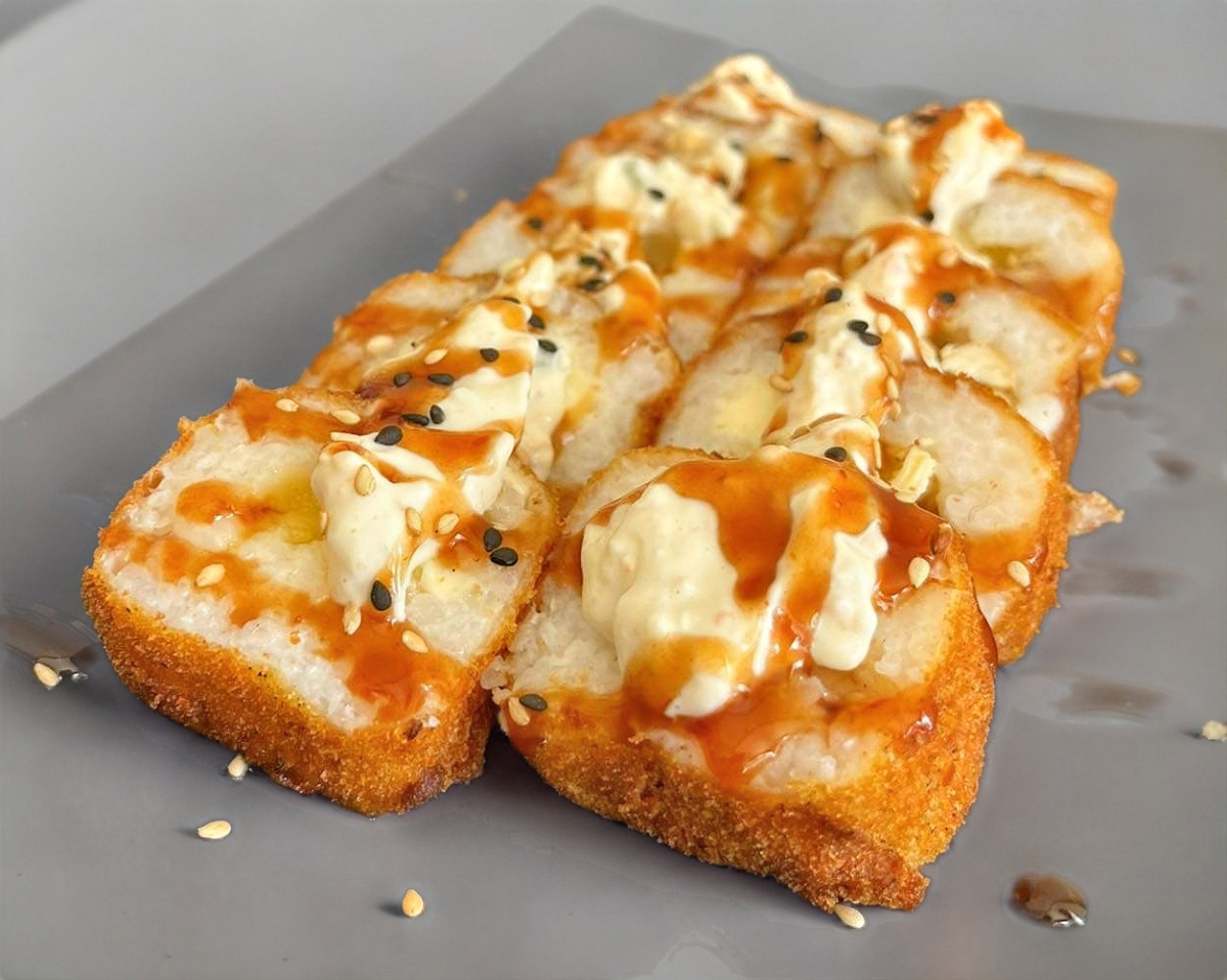 Maki de arrachera 10 bocadillos, queso Philadelphia y queso manchego.