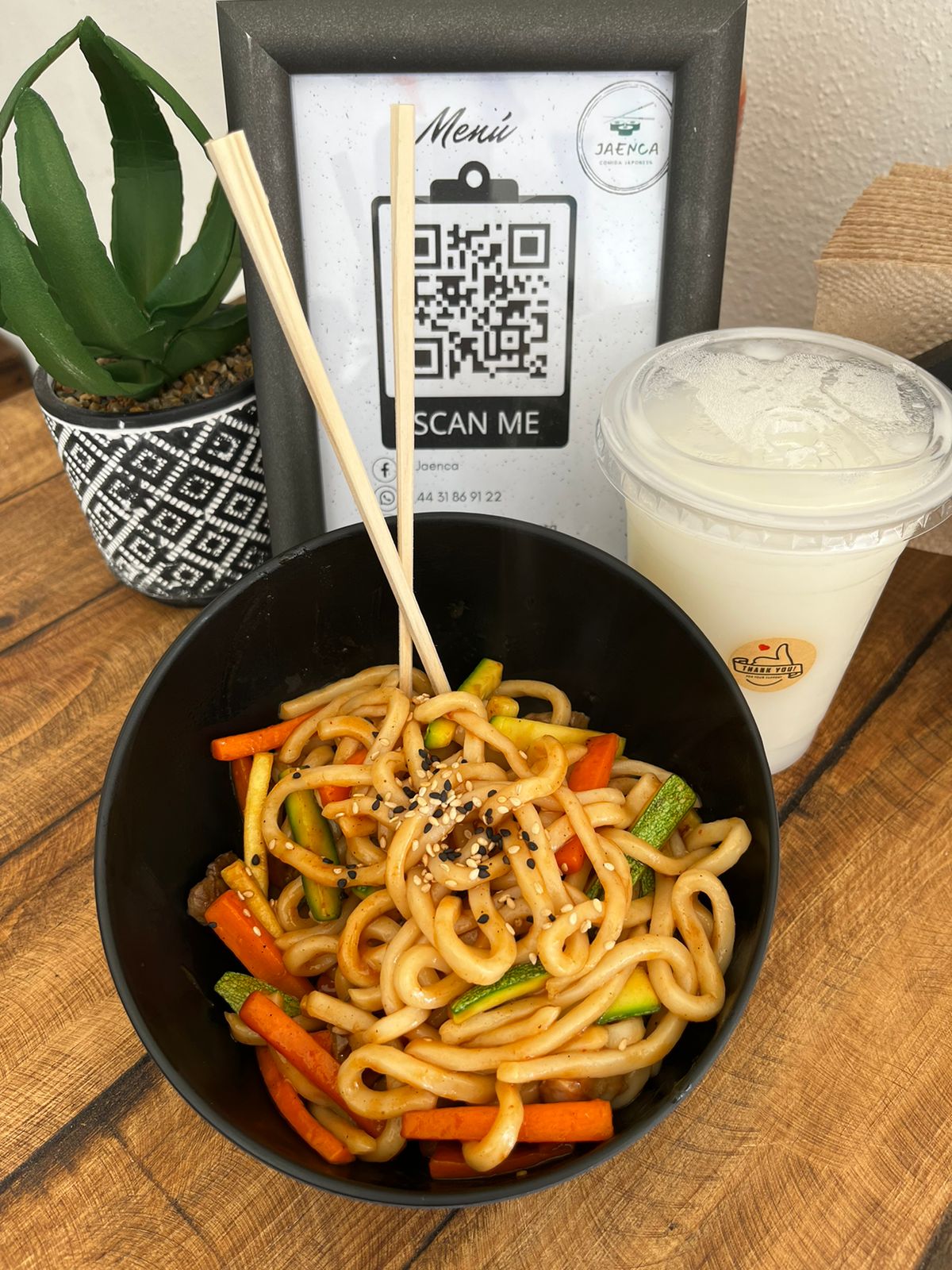 Zanahoria, calabaza y pepino. Bañado en camarones a la diabla.