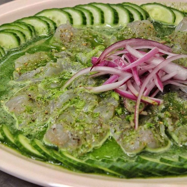 1/2 litro de Camarones, chiles frescos o secos, limón, tiras de cebolla y tiras de pepino.