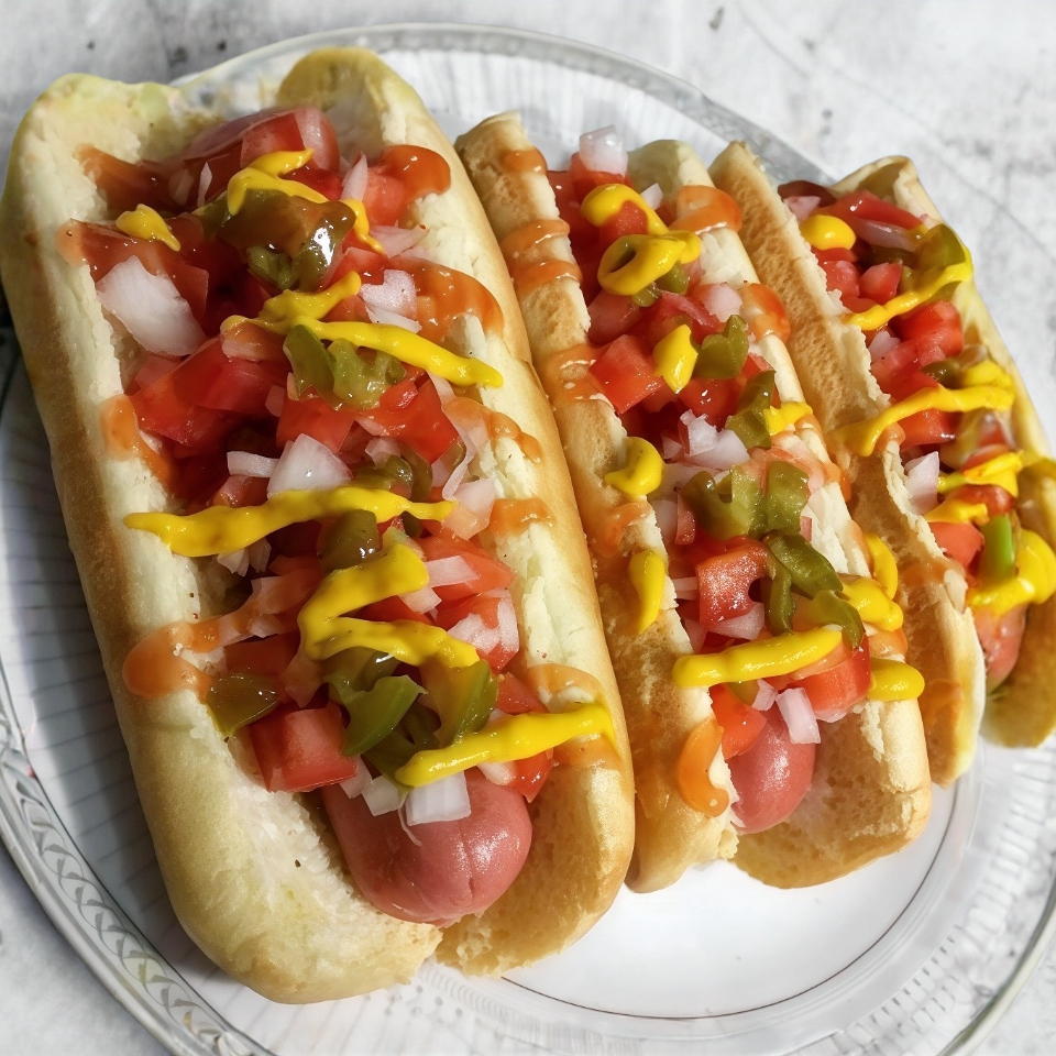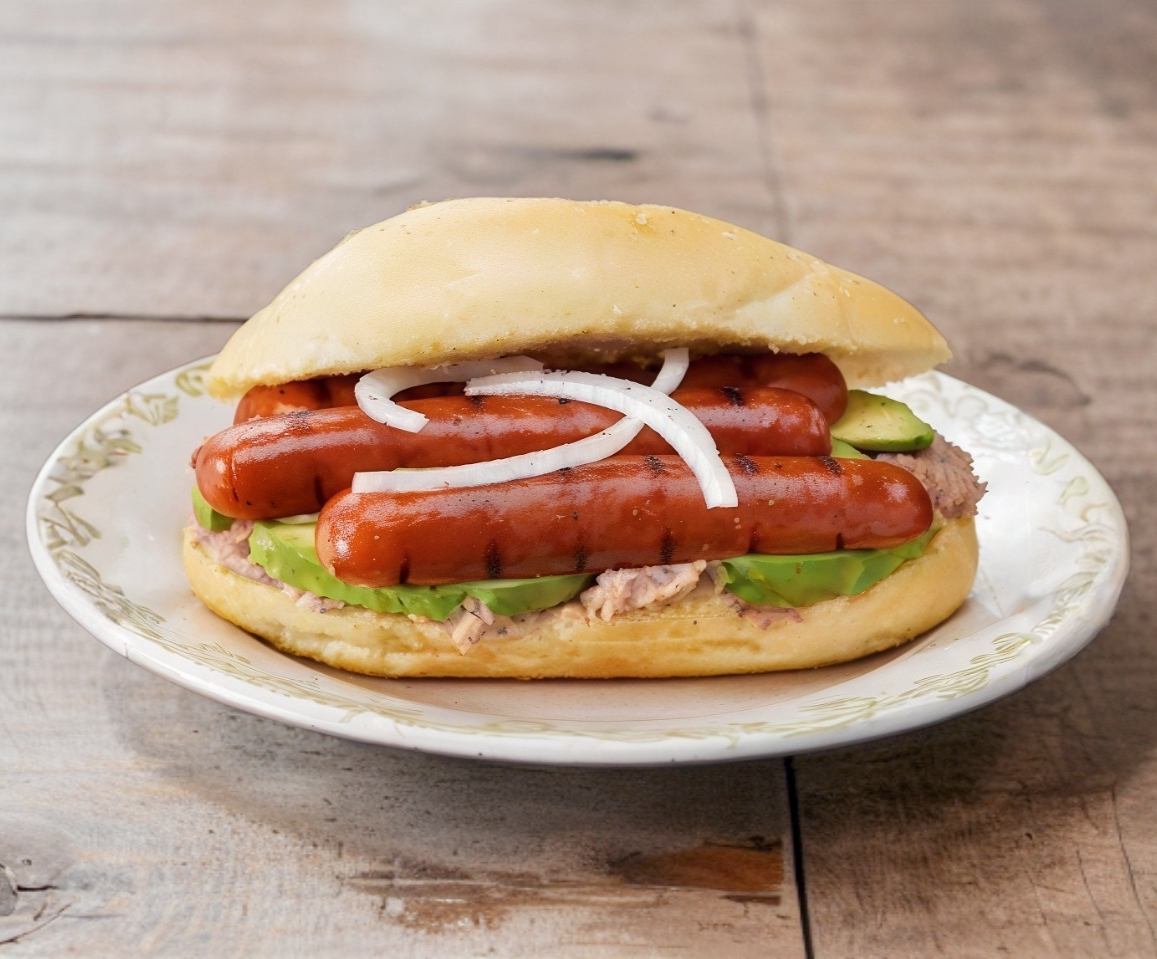 Hot Dog Sencillo, lleva lechuga, jitomate, cebolla, chiles en vinagre, mayonesa, catsup, mostaza, crema