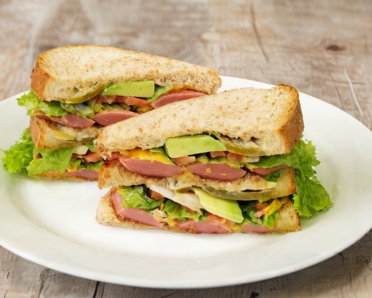Jamón, salchicha, queso Oaxaca, queso amarillo, piña y verduras.