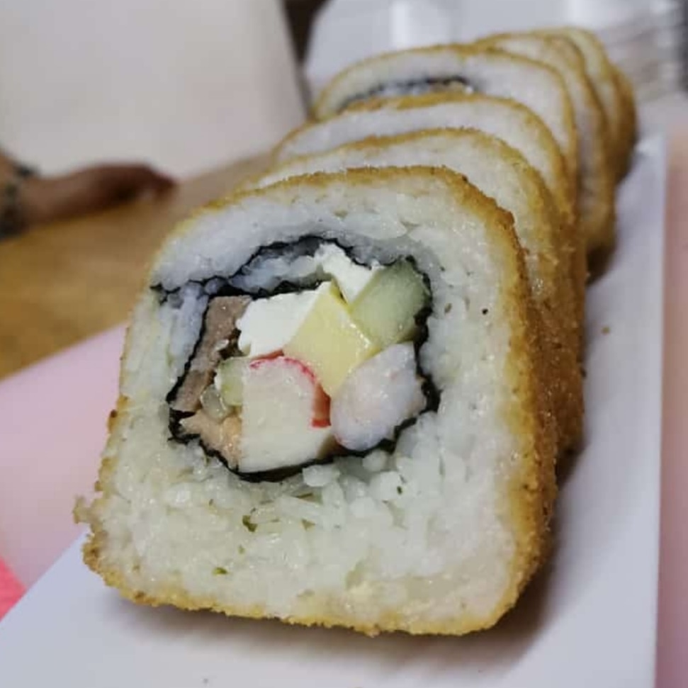 Kushiague de camarón, Philadelphia, aguacate por fuera y empanizado.