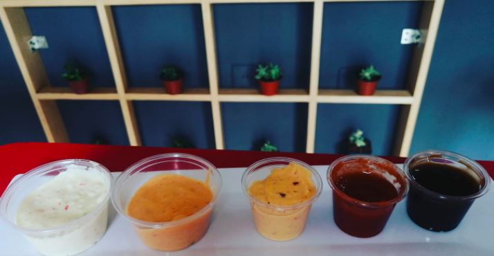 Pollo o carne de res, Philadelphia, manchego empanizado por fuera y tampico.