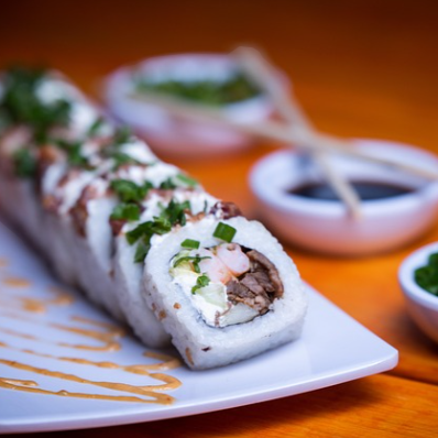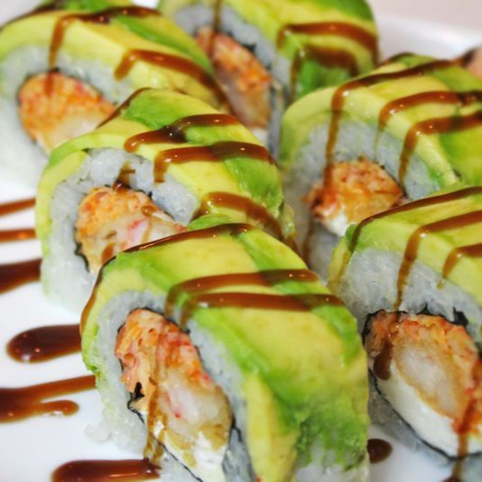 P.d. Camarón kushiage, filadelfia, pepino. P.f. Aguacate, salsa dulce de la casa.