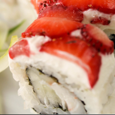 P.d. Surimi, pepino, filadelfia. P.f. Fresa, sriracha.