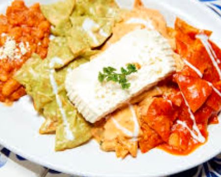 Chilaquiles con frijoles.