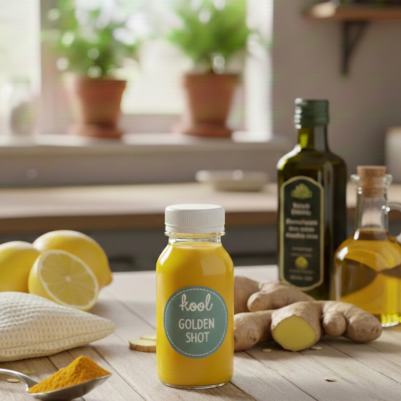Boost de energía con cúrcuma, limón, aceite de oliva y pimienta que te ayuda a empezar tu día desinflamada y con más energia