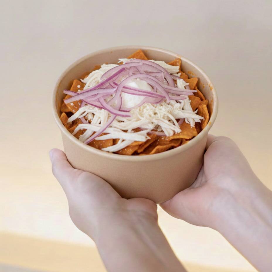 Deliciosos chilaquiles cremosos rojos con pollo para disfrutar