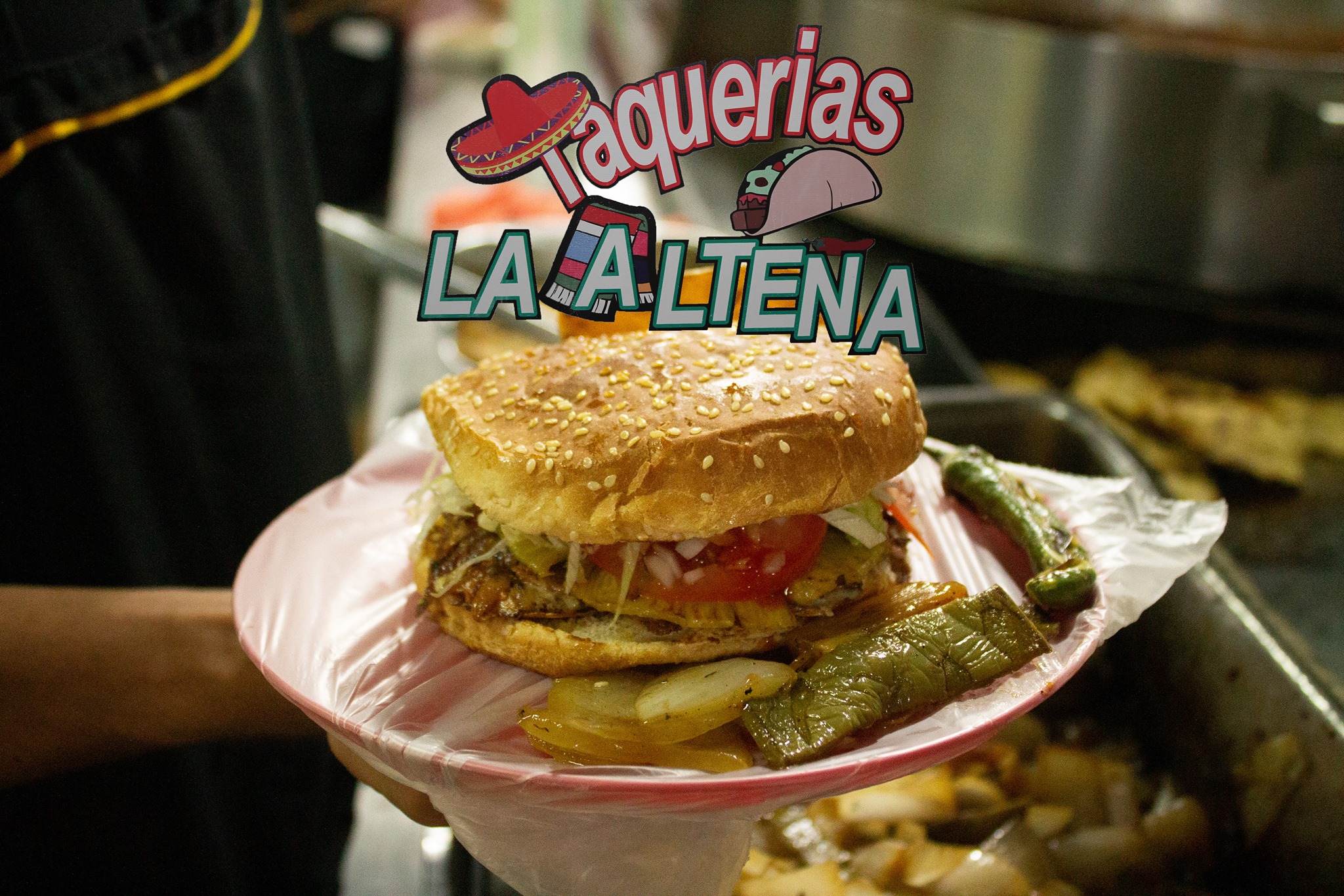 Bolillo calientito relleno con pastor, acompañado de tus salsas favoritas.