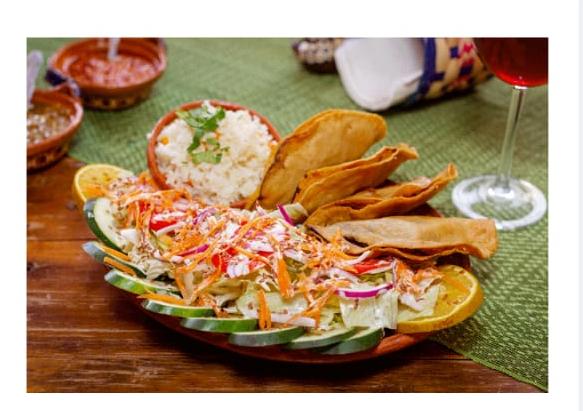 Con salsa picosa, Acompañado de ensalada, sopa fría y pan al