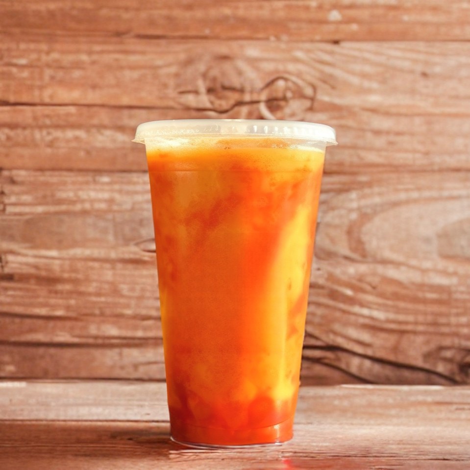 Bebida frappeada a base de agua, sabor pelón pelo rico mango. decorado con chile y chamoy.