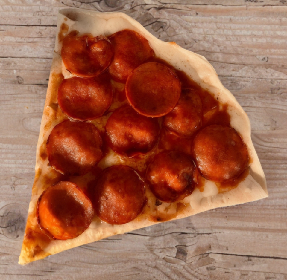 Crepa rellena de queso manchego, rodajas de pepperoni, salsa italiana y pimienta.