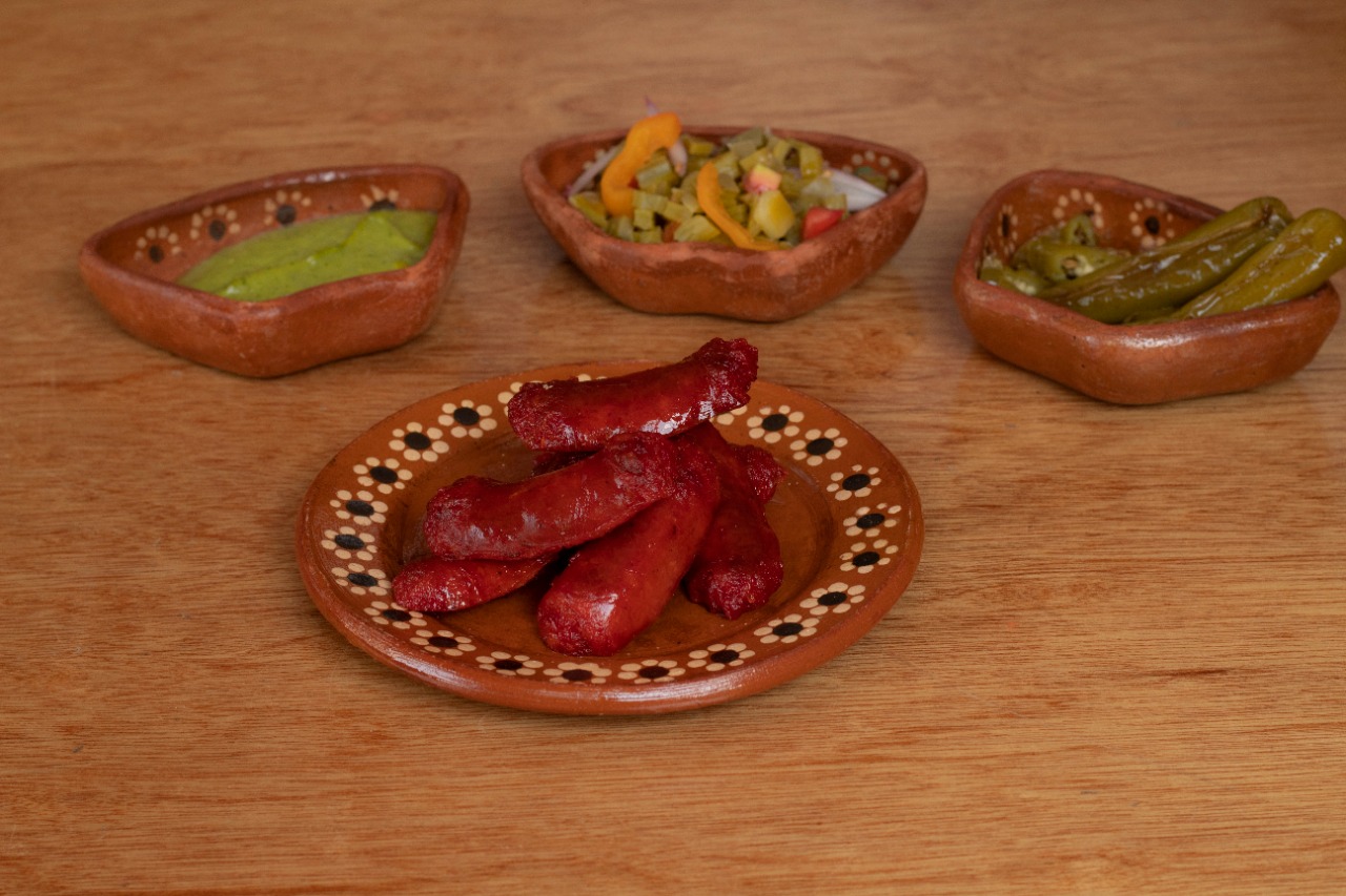 Acompañada con chorizo a las brasas, frijolitos de la Olla, cebollita asada y frijolitos de la Olla.Incluye salsas, tortillas, frijoles refritos y limones.