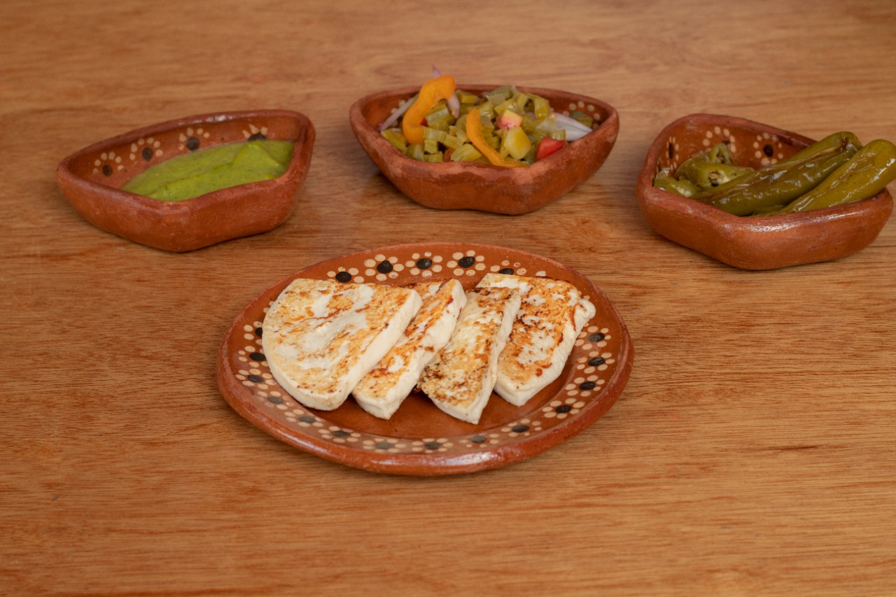 Acompañada con chorizo a las brasas, frijolitos de la olla, cebolla asada, aguacate con salsas, tortillas, frijoles refritos y limones.
