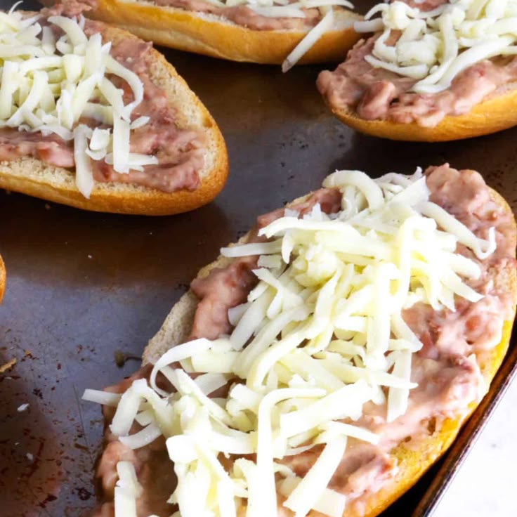 Pan doradito con frijoles refritos y una generosa capa de queso gratinado. Acompañados de pico de gallo fresco.
