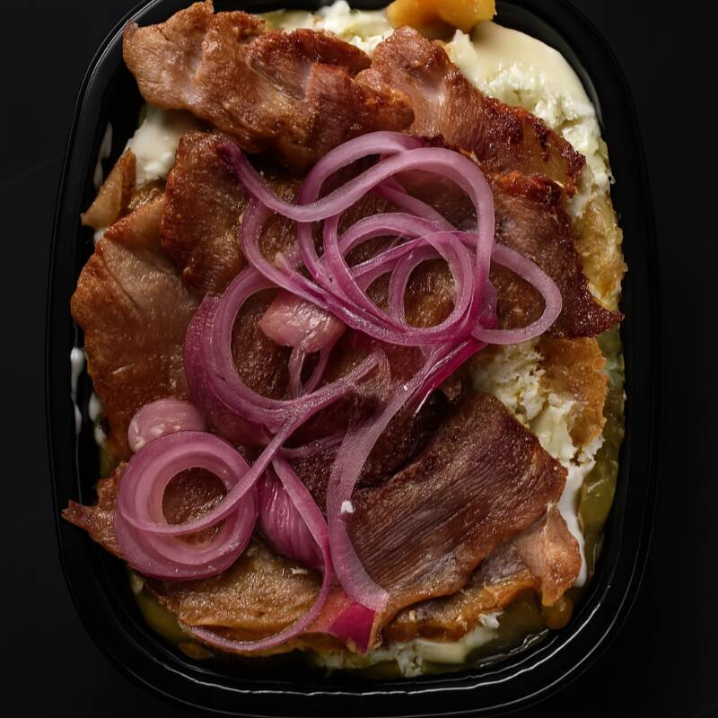 Orden de 3 enchiladas rellenas de pollo, y gratinadas acompañadas con cebolla.