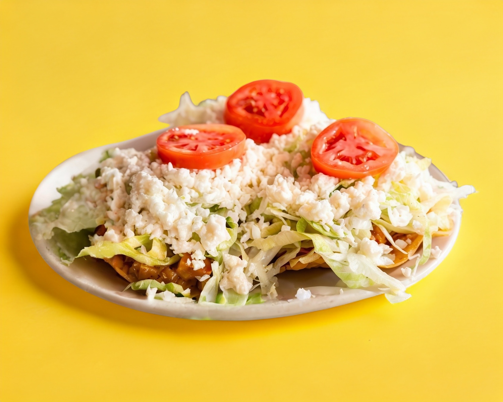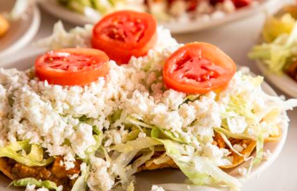 Rellenas de pollo con salsa de tomate lechuga queso ranchero y crema