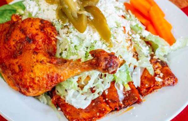 Enchiladas con Pieza de Pollo