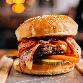 DELICIOSA HAMBURGUESA TOCINO FLIPANTE