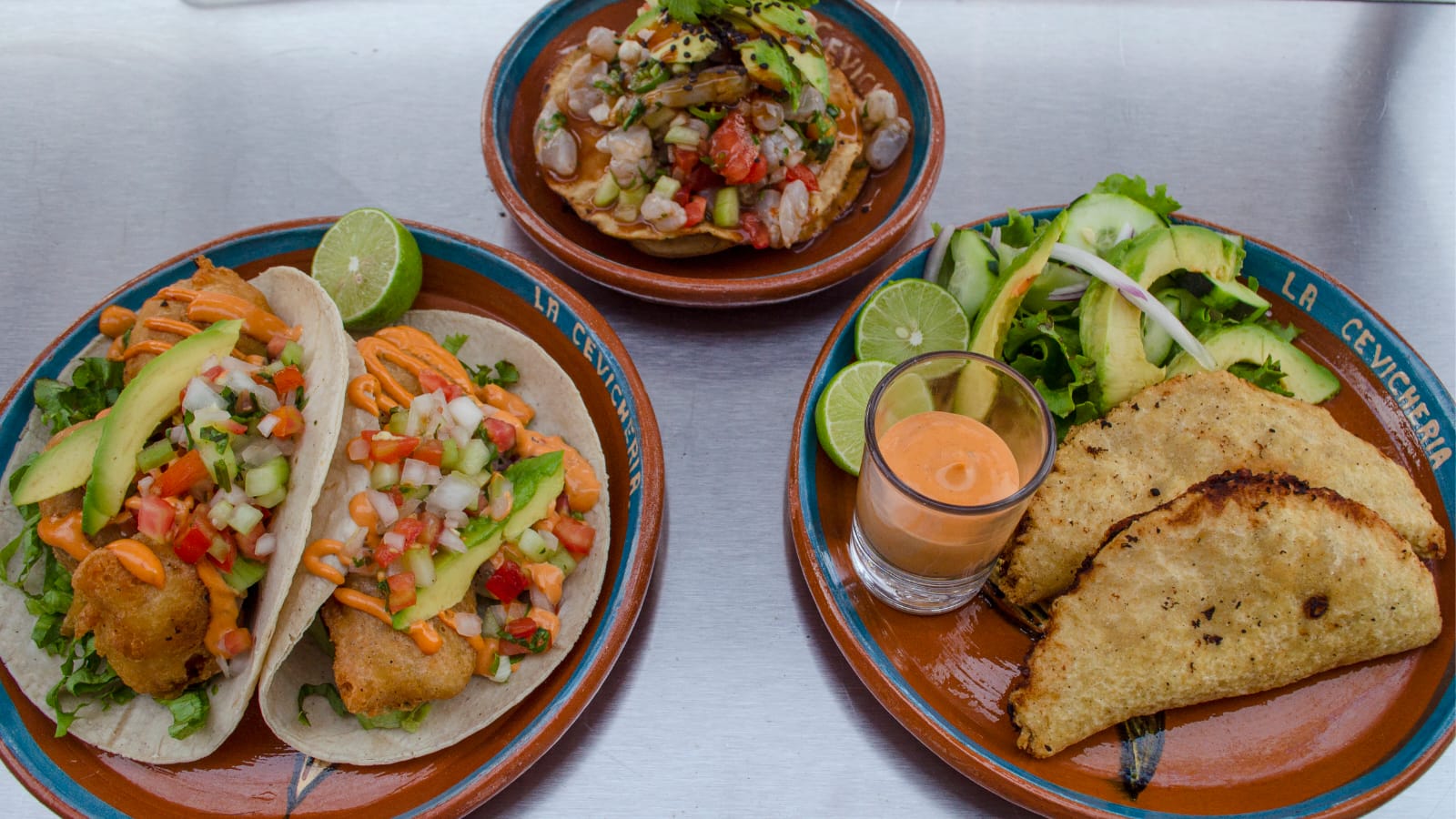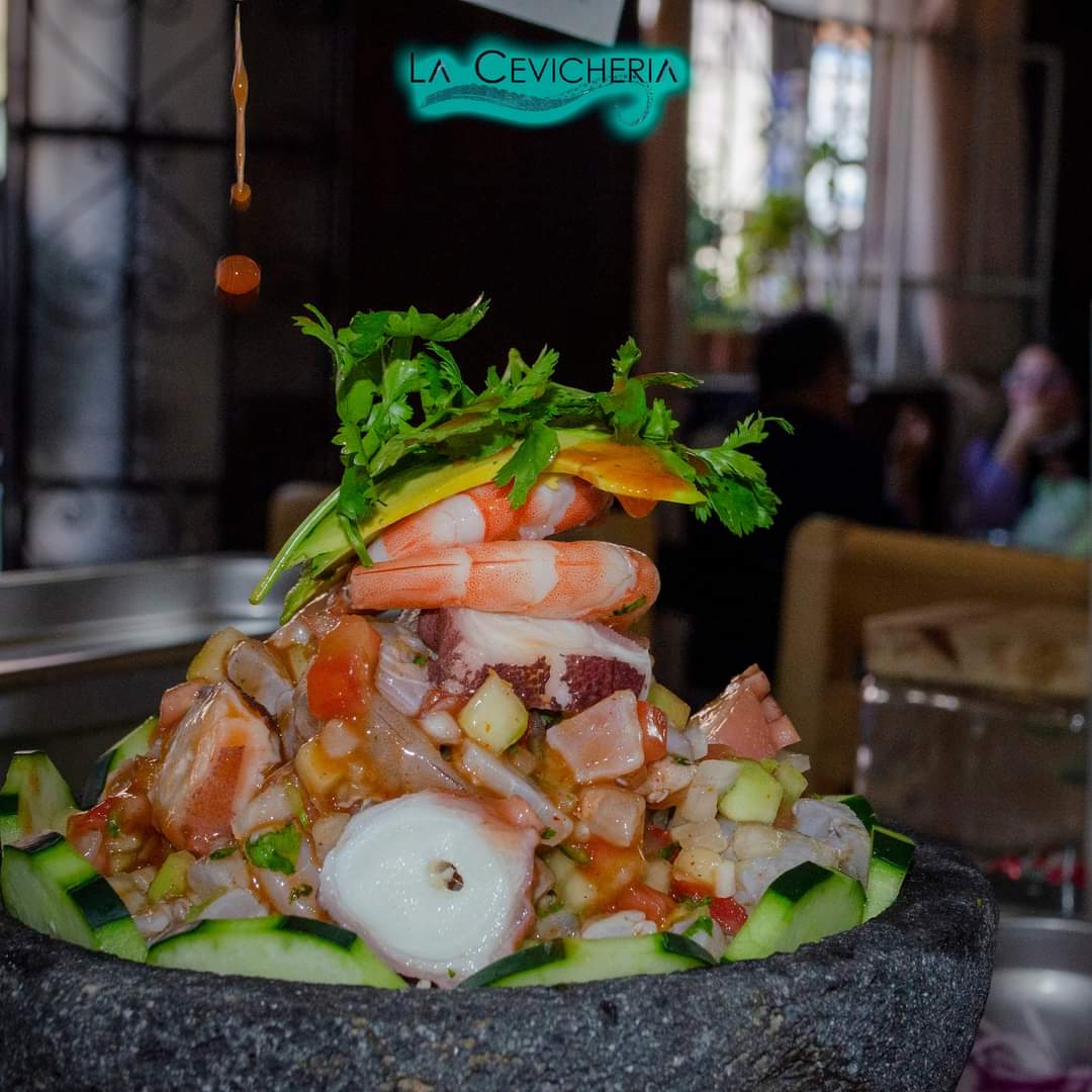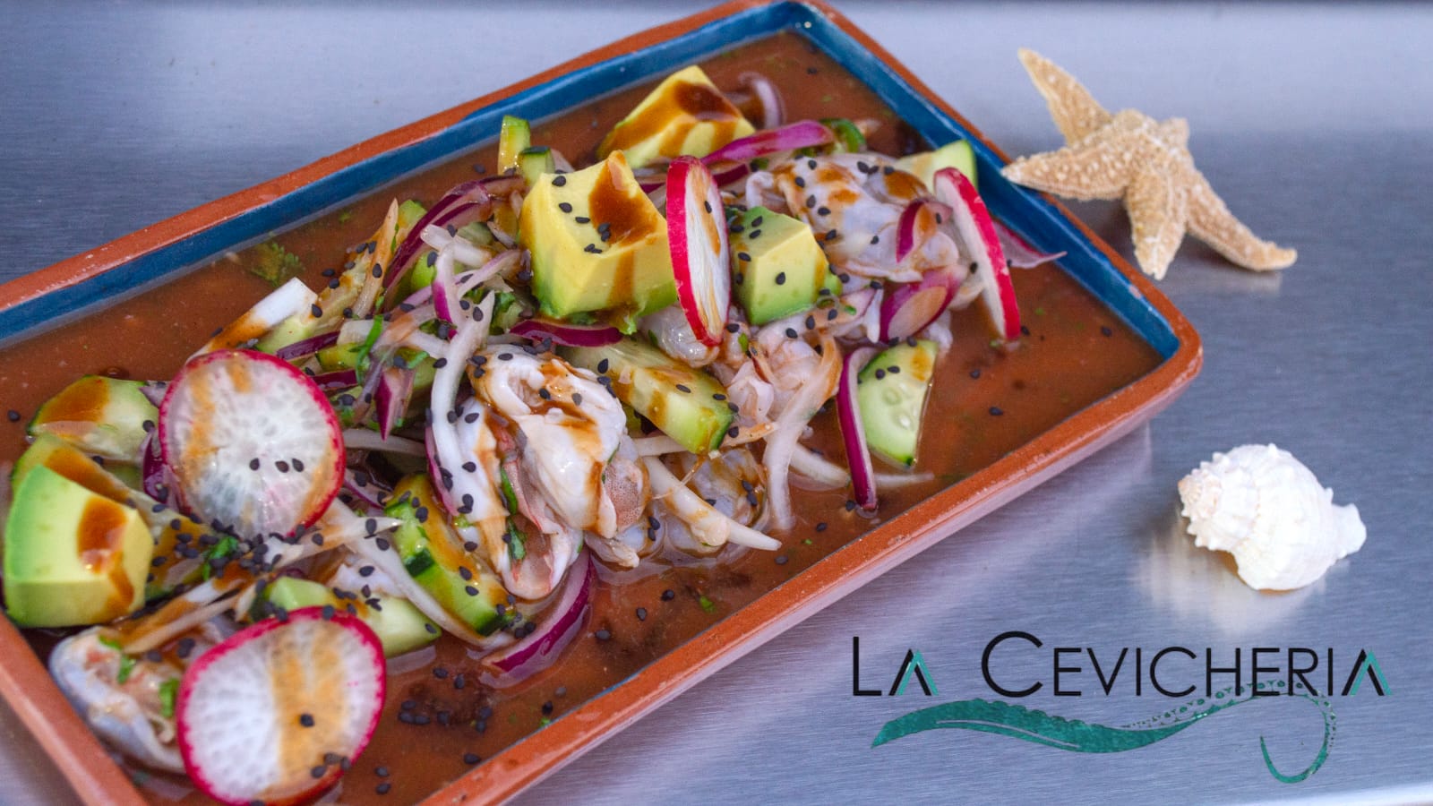 Deliciosos trocitos de pescado curtido en limón y aguachile verde o rojo de la casa, con cebolla, pepino, cilantro, y aguacate. Incluye tostadas, galletas, aderezo de cilantro y salsa.