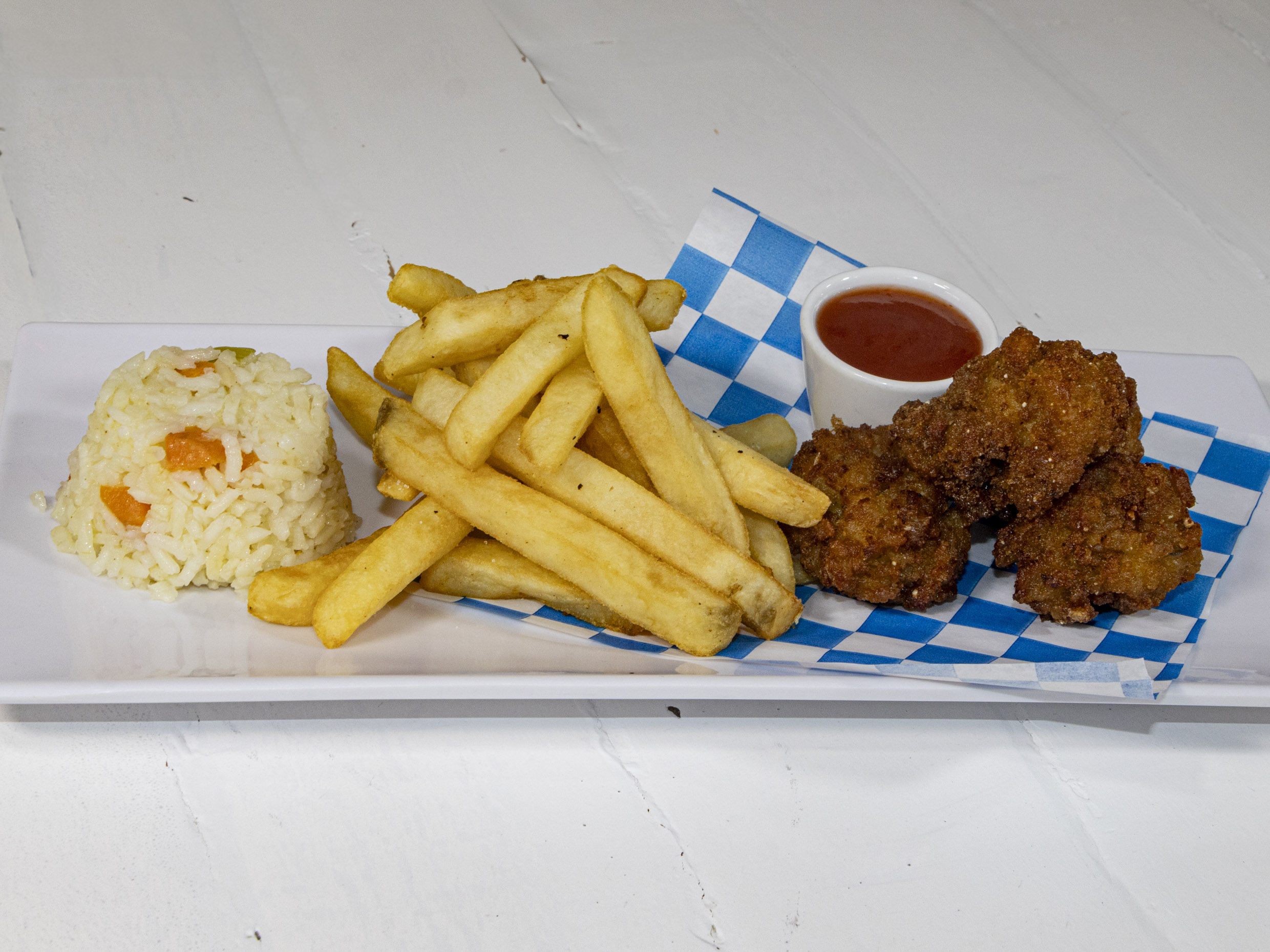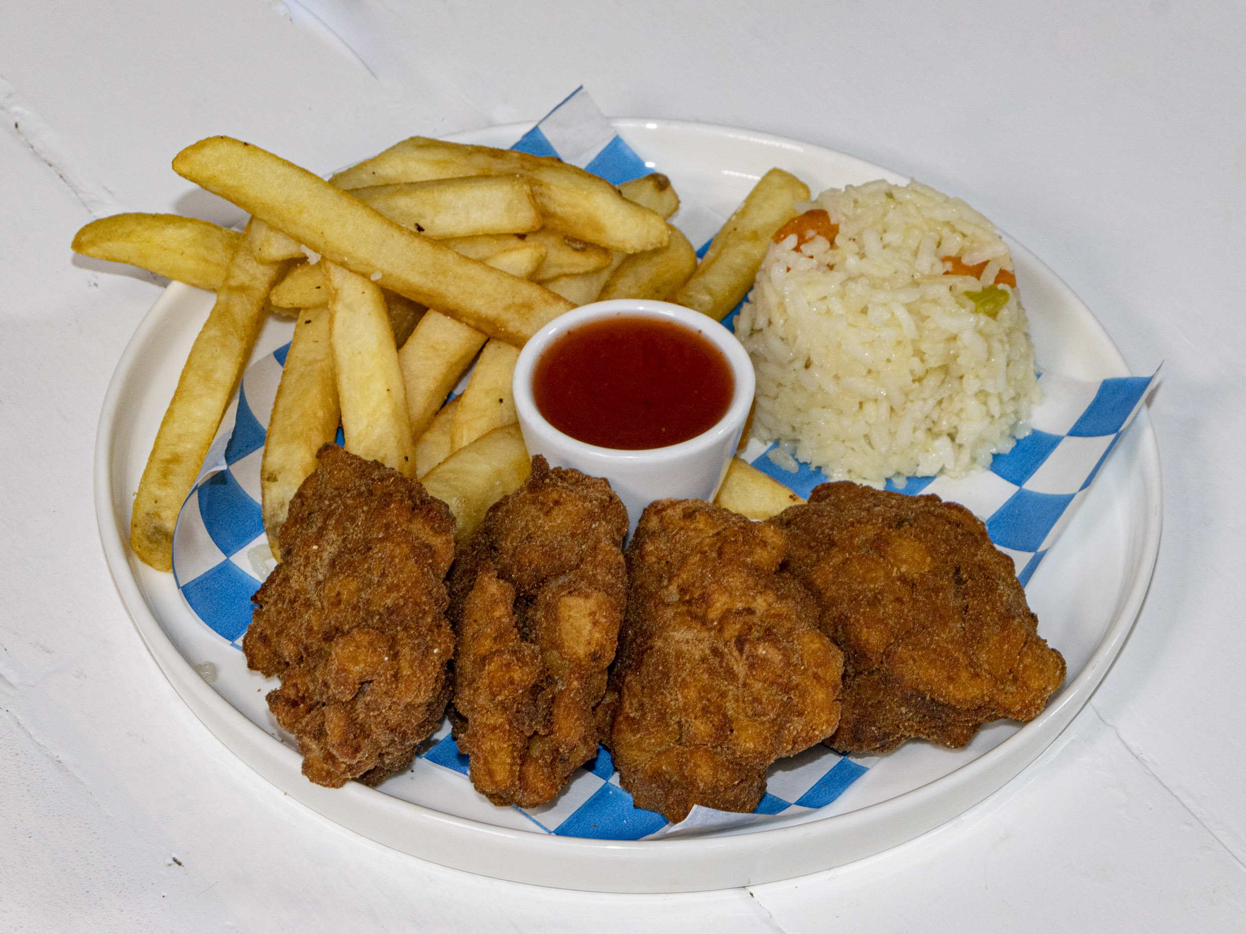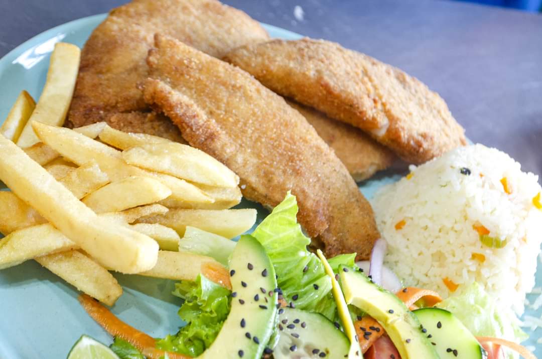 Delicioso filete de pescado preparado a tu gusto, acompañado de sopa de arroz, ensalada fresca, papas a la francesa, aderezo y tostadas.