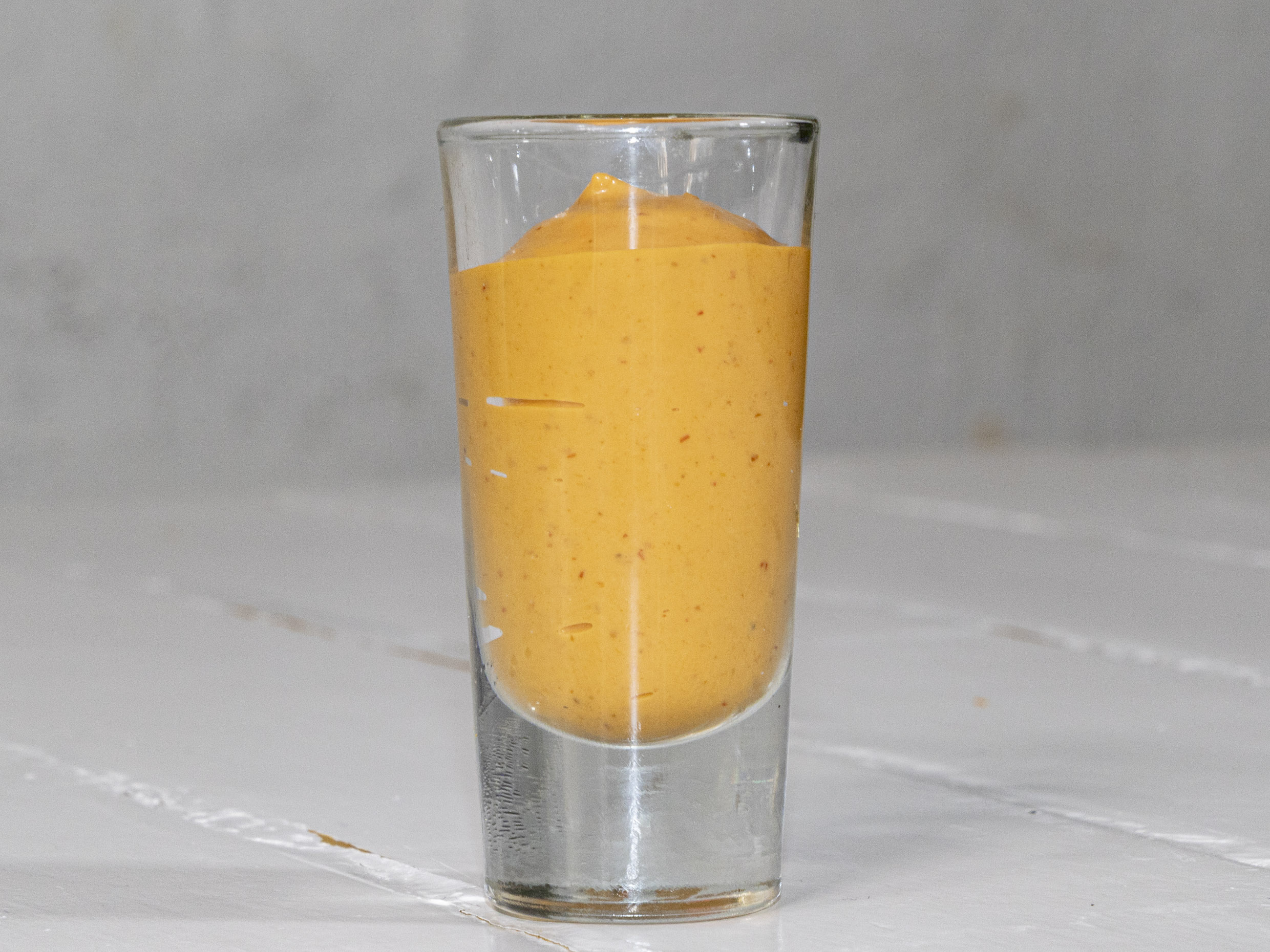 Acompañado de ensalada fresca y salsa de aceite de chile morita y cacahuate.