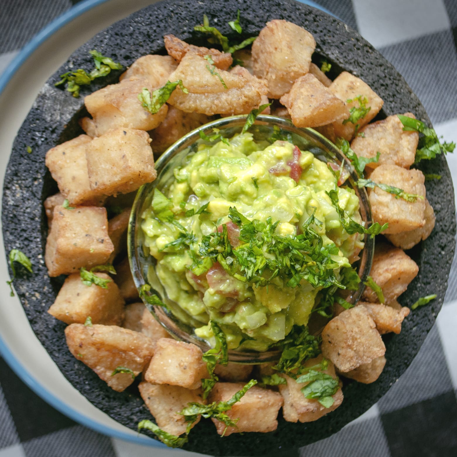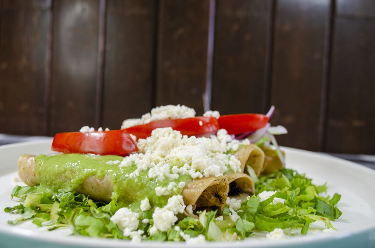 Deliciosas flautas de Marlin, acompañadas de una cama de lechuga fresca, una exquisita salsa cremosa de aguacate y tómate y un toque de queso ranchero.