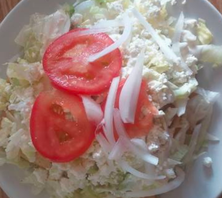 Con milanesa , lechuga, jitomate, cebolla y chiles en vinagre.