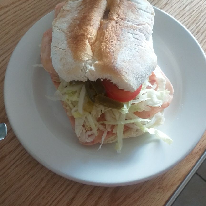 Con mayonesa, lechuga, jitomate, cebolla y chiles en vinagre.