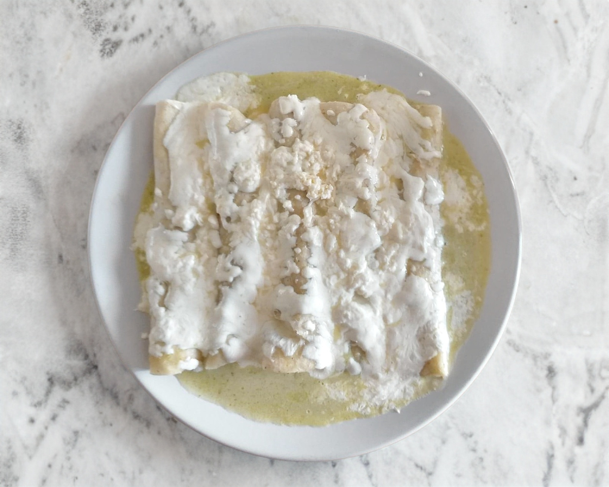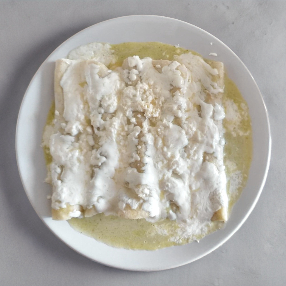 4 pz. Rellenas de pollo, bañadas en salsa verde y gratinadas en queso.