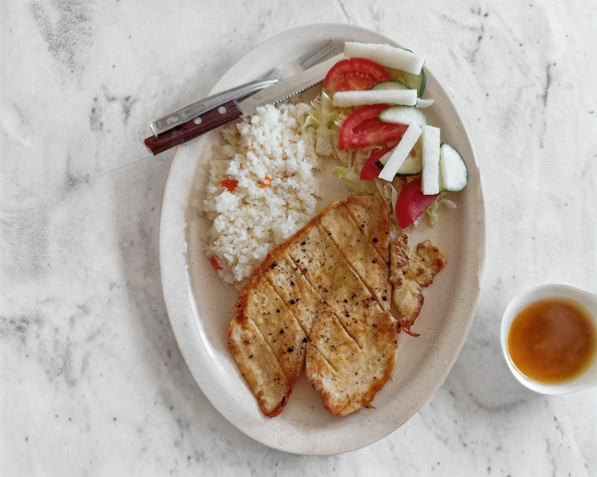 Pechuga de Pollo Asada + Filete de Pescado Asado + 2 Aguas del Día