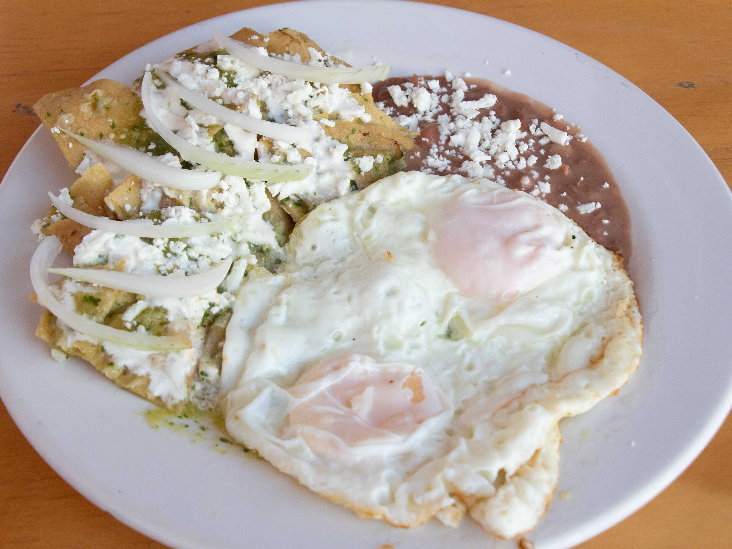 Acompañados de huevo revuelto o estrellado, frijoles, queso y crema.