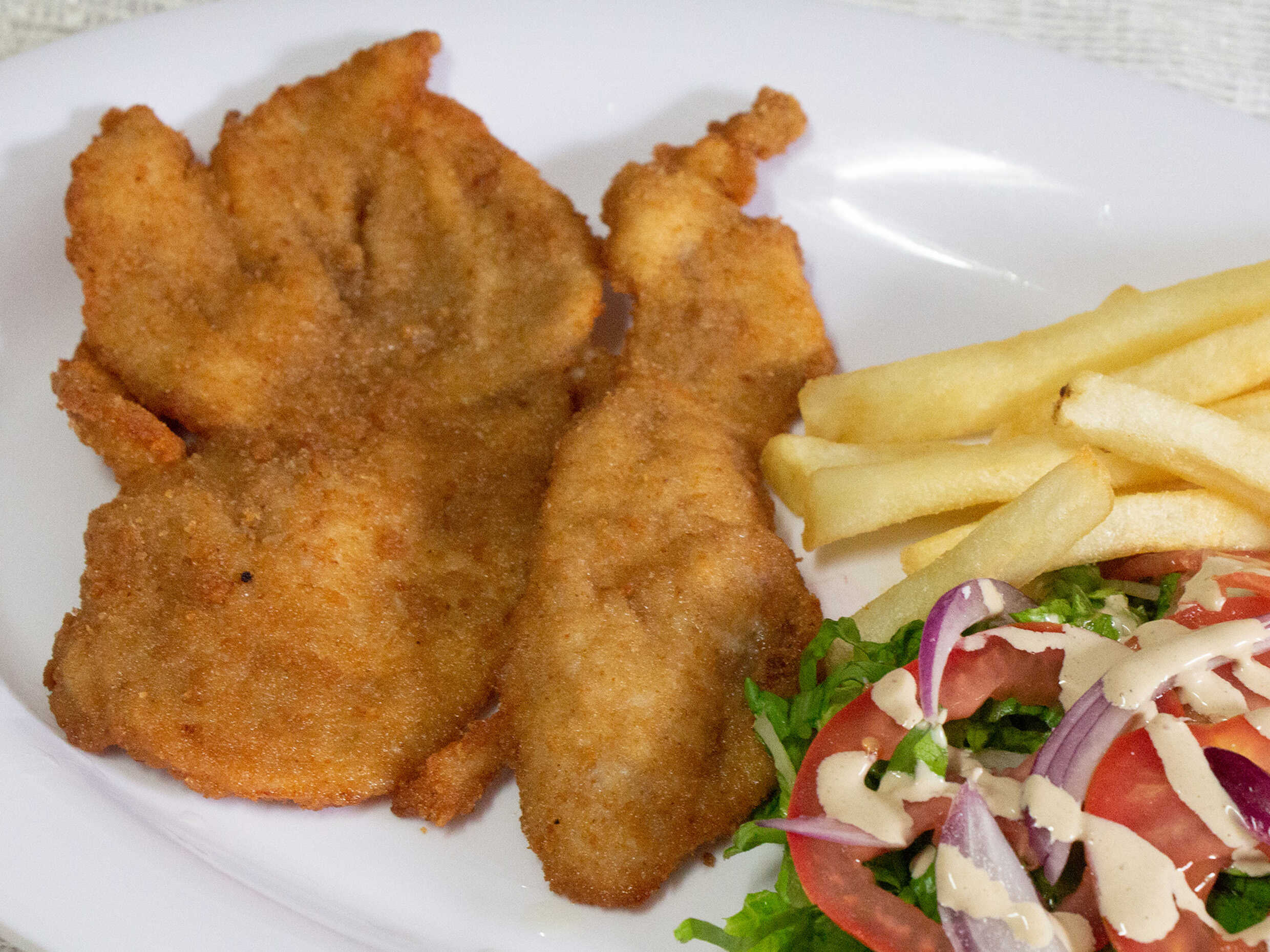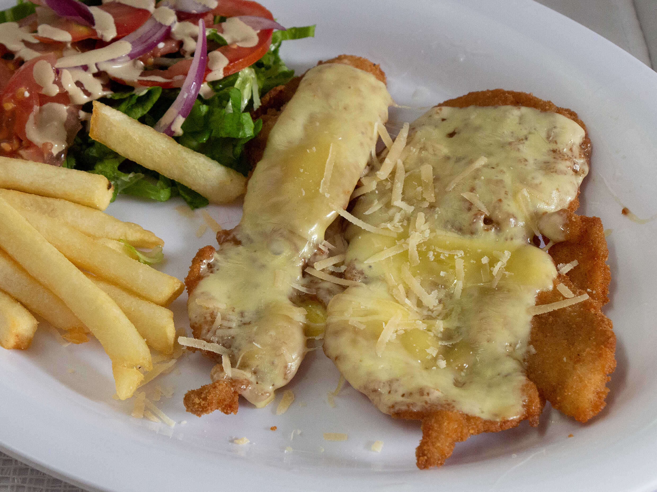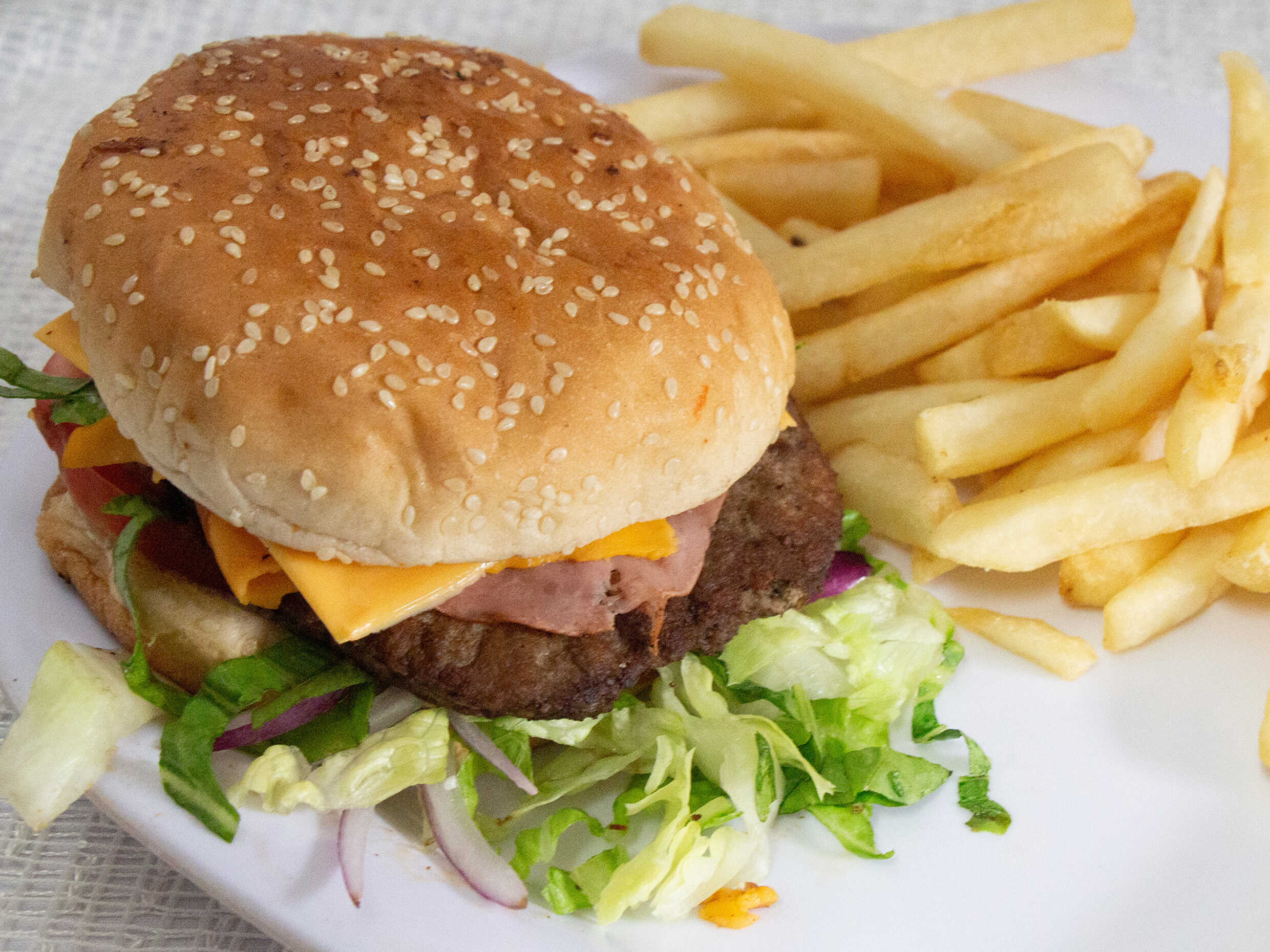 ensalada papas fritas y dos guarniciones ( arroz , frijoles , espaguety dos a elegir )